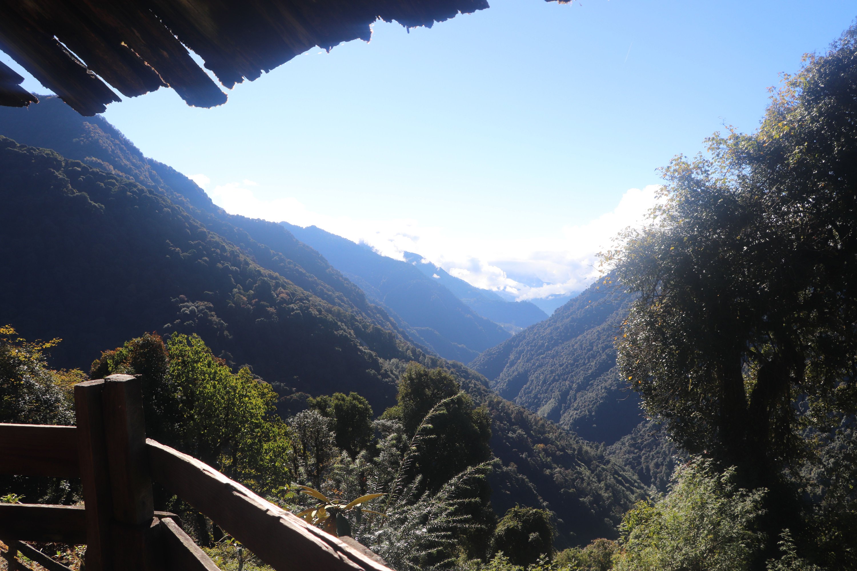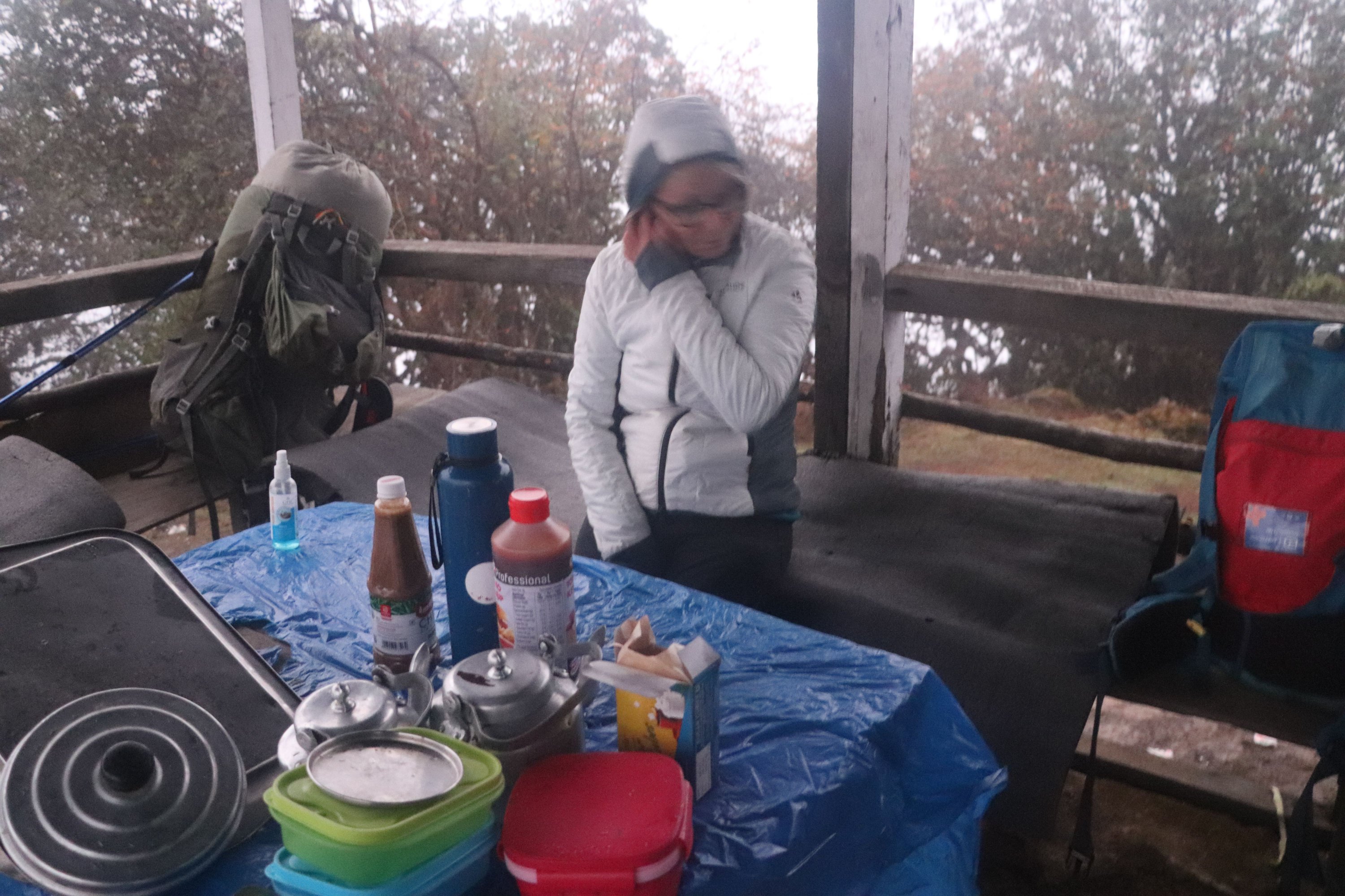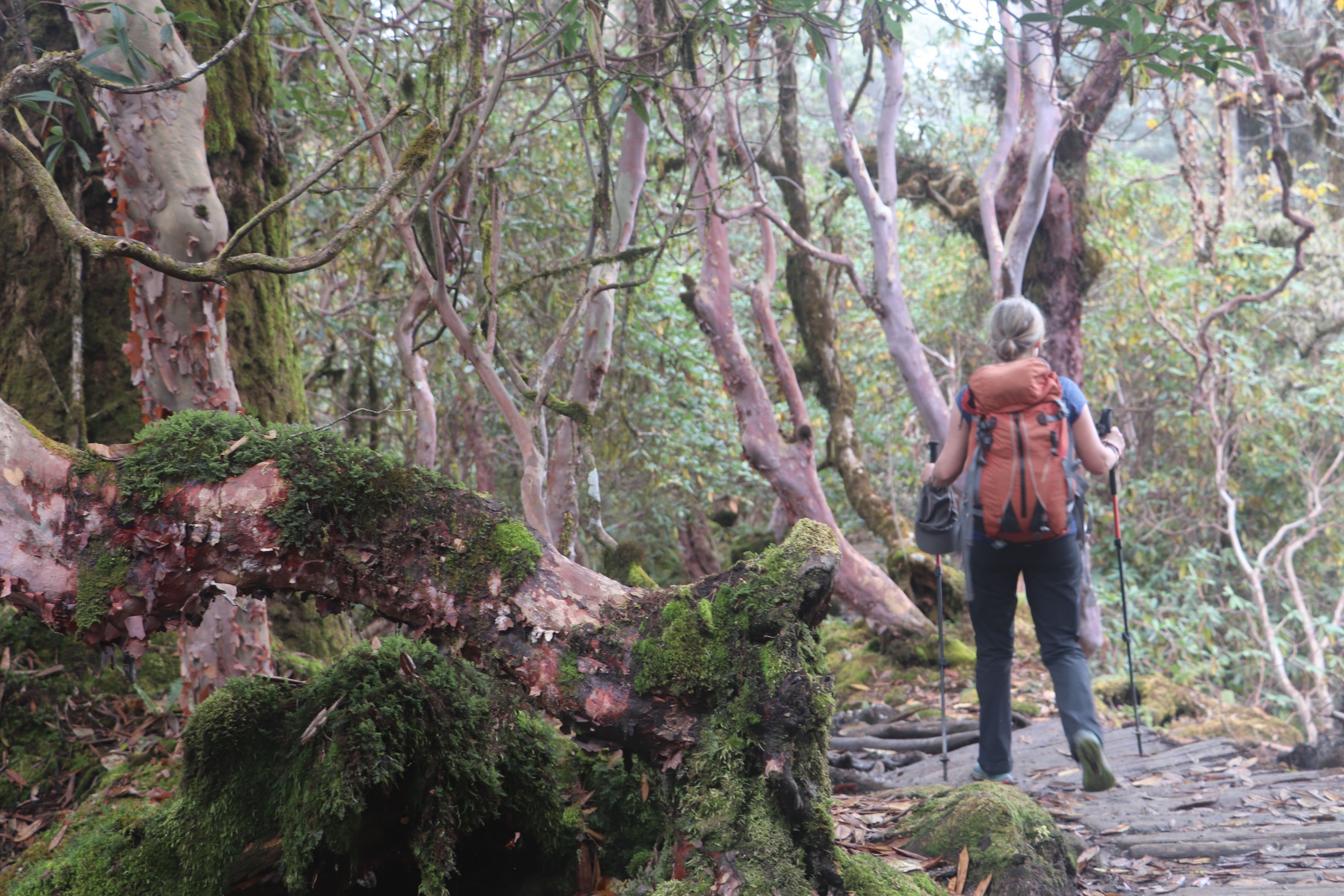 Première partie en forêt humide (rhododendrons). Puis terrain montagne facile. Sentier marqué avec balises blanches. Des cabanes à chaque étape. Plutôt insalubres.