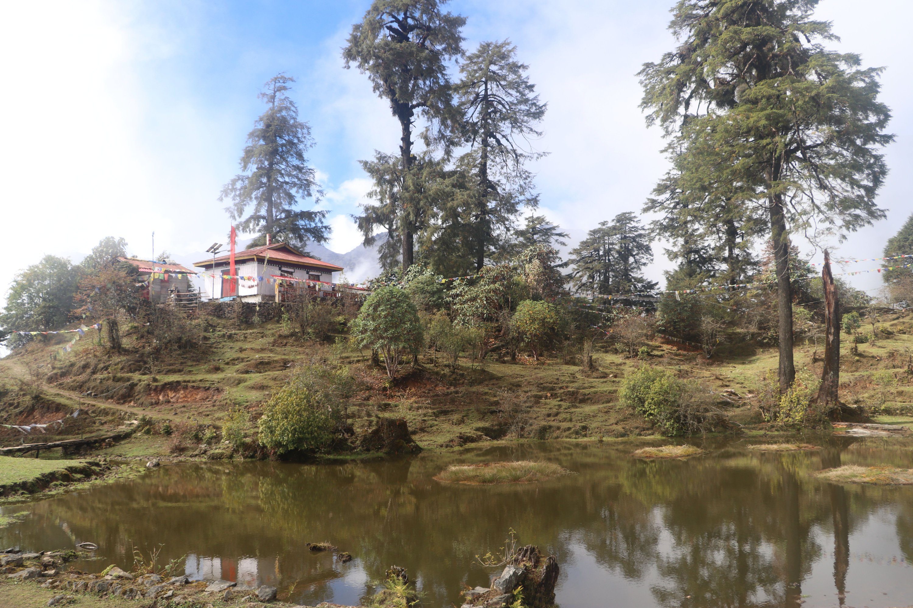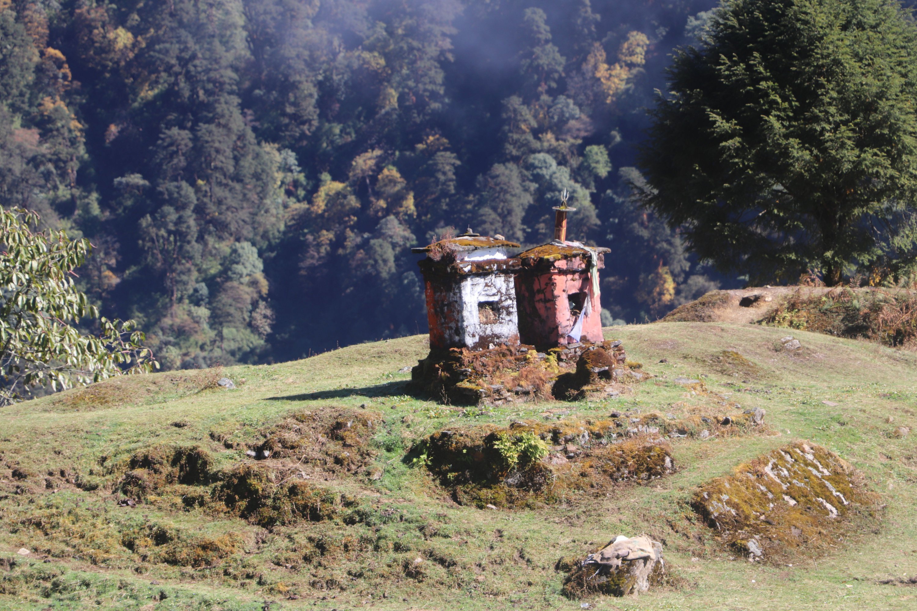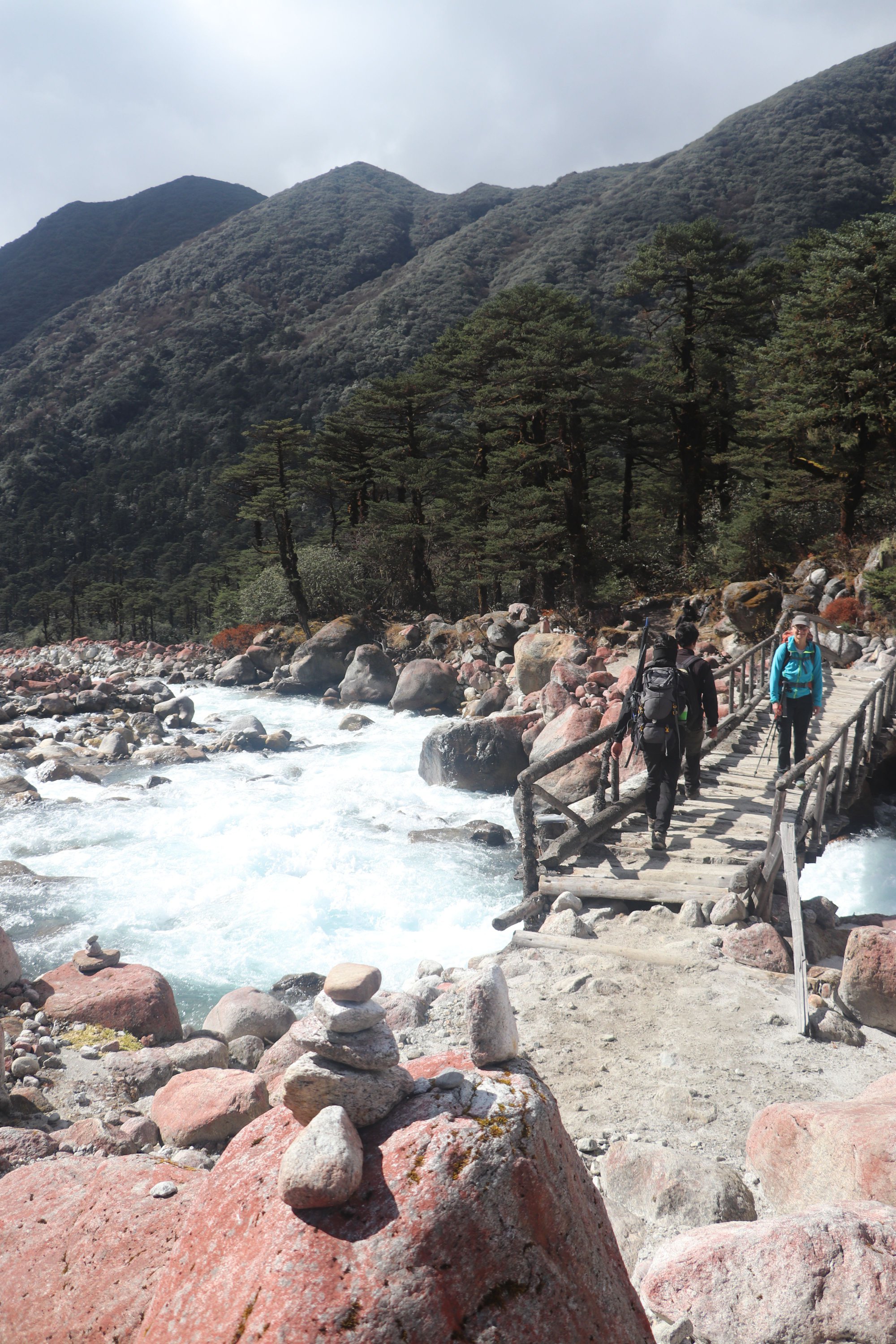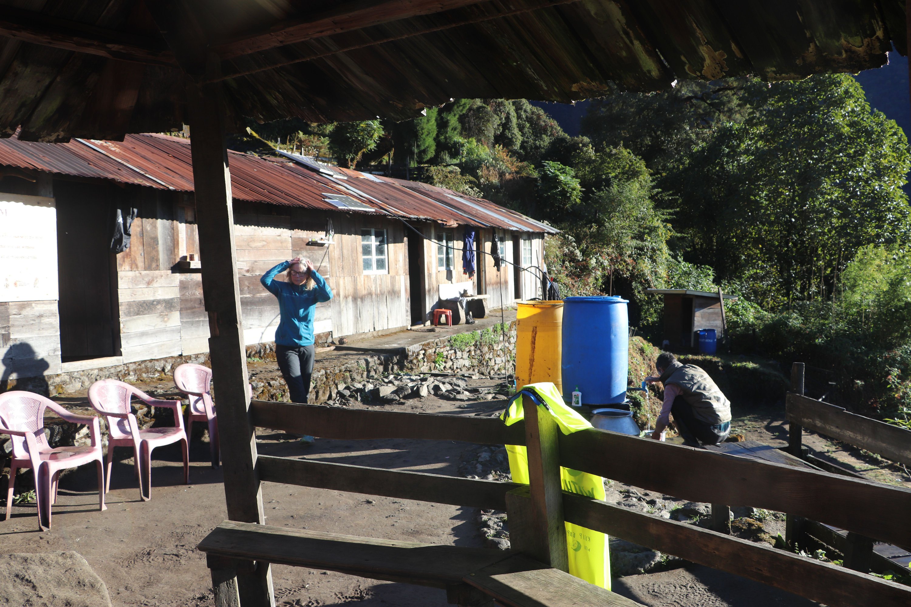 Première partie en forêt humide (rhododendrons). Puis terrain montagne facile. Sentier marqué avec balises blanches. Des cabanes à chaque étape. Plutôt insalubres.